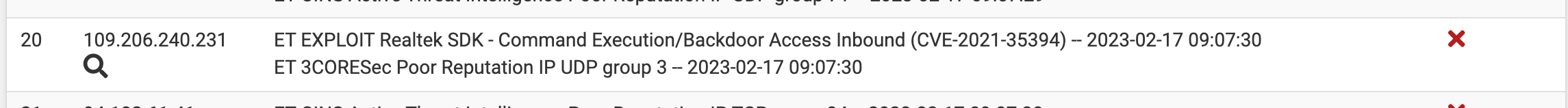 (Image: Attacker hitting snorts defences with this CVE over and over so much that it has flagged a block)