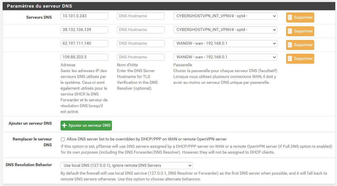 Normalement, ci-dessus quand l’interface cyberghost est en court il doit sélectionner les DNS de cette même interface, et inversement pour WAN ?J’ai essayé avec l’option :