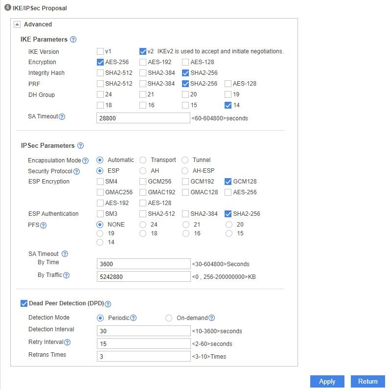 Alguém teria os parametros pra fechar VPN com esse roteador Huawei USG6510E pra eu bater com a configuração que fizemos?