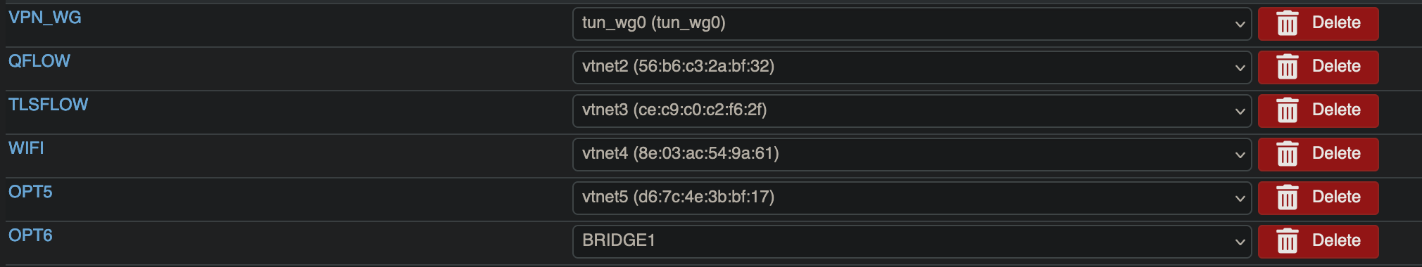 4. Created new Bridge, with "VPN_WG" being selected as the Member Interfaces and "OPT5" as a Span Port: