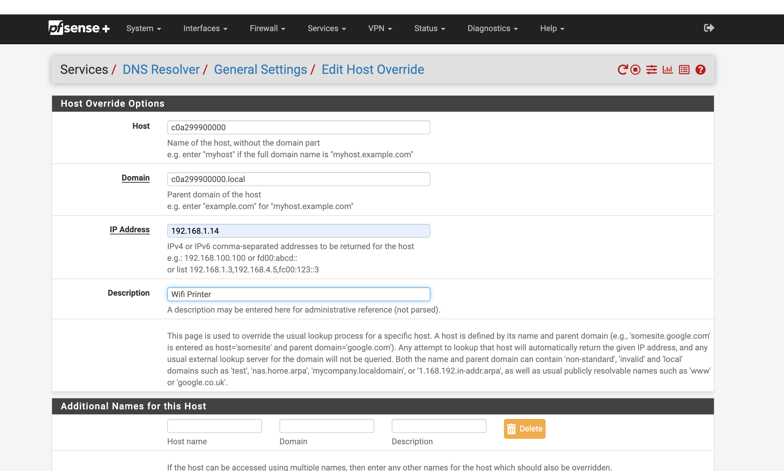 2. add a DNS host override for the hostname the Canon IJ Scan app utilizes. I used local and home.arpa
