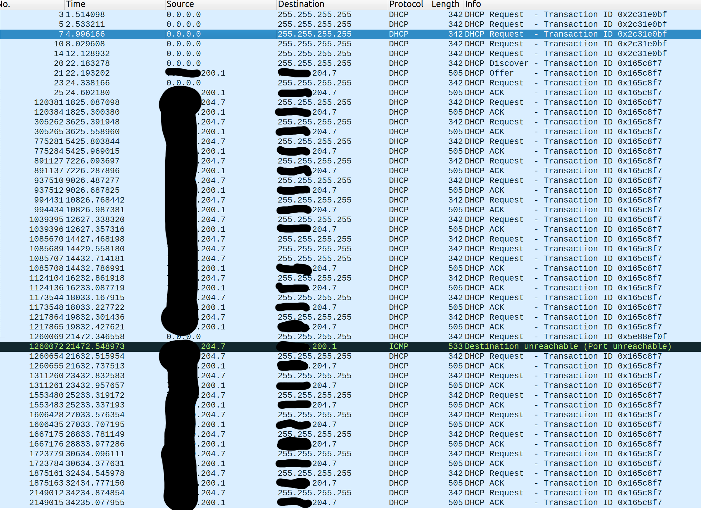 Given the strange DHCP broadcast request shown above, I started looking at that as well.