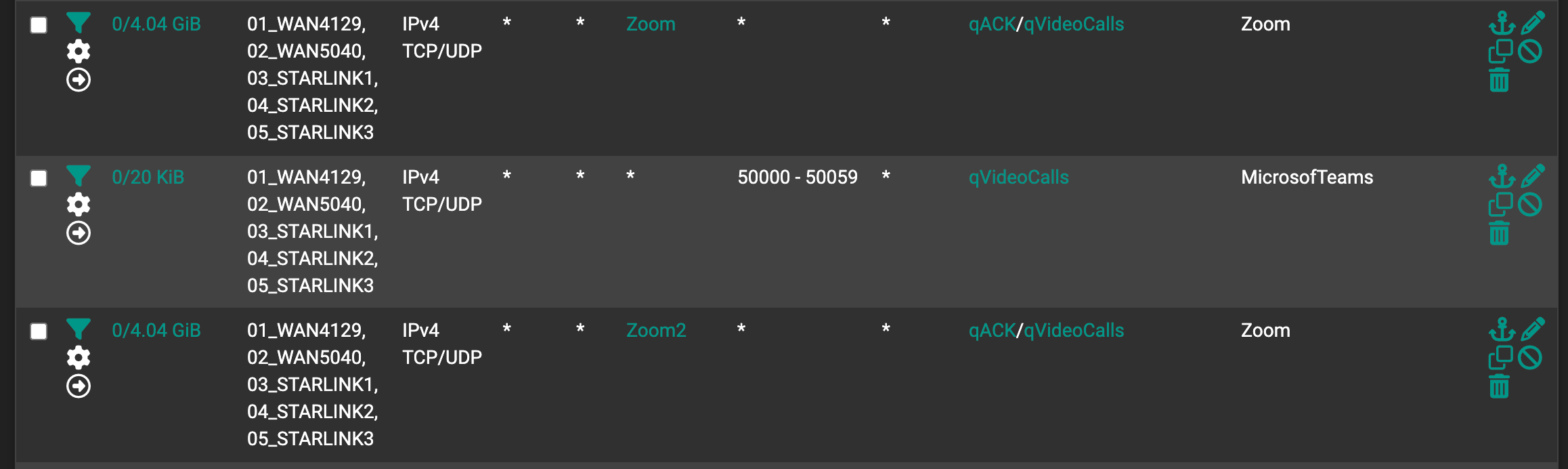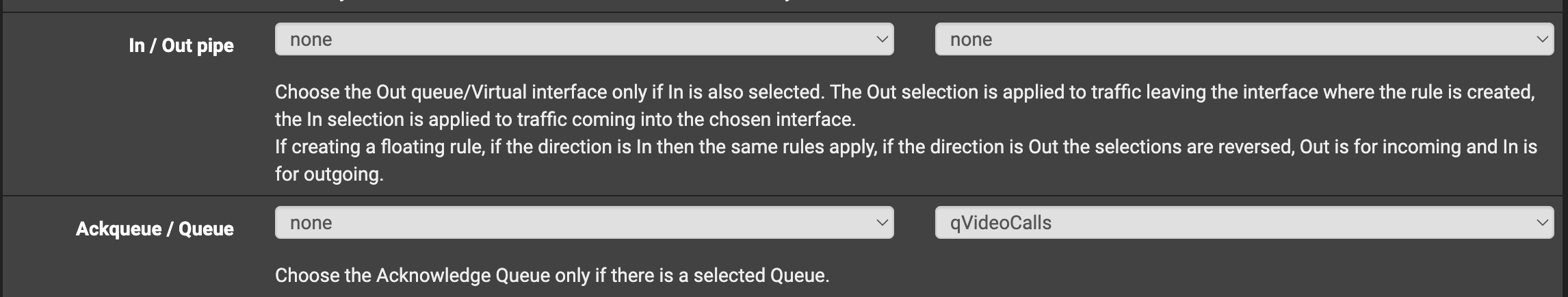 The issue is that I don't see any traffic in Status/Queues when I'm watching the queues. I do have a rule for HTTPS 443 to be matched to qOthersHigh, but that rule is below all my floating rules for the queue "qVideoCalls". Anyone know why the Zoom traffic isn't matching in the rules? Thanks in advance.