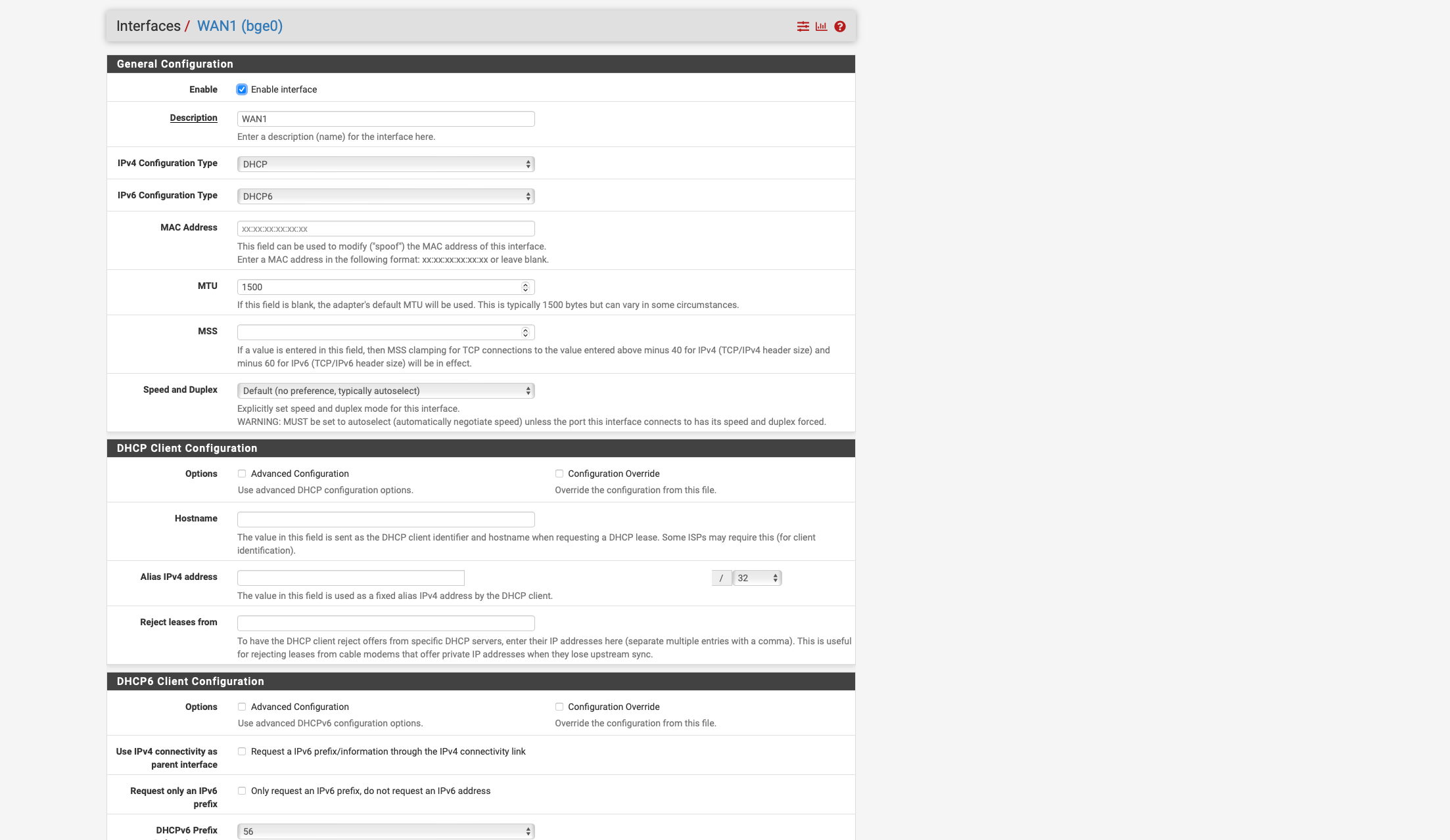WAN 1 Cable internet Vodafone Germany 1000 Down 50 UP Static IPV4 and IPV6 per DHCPv4 and DHCPDv6 Native Dual Stack no DS Lite.