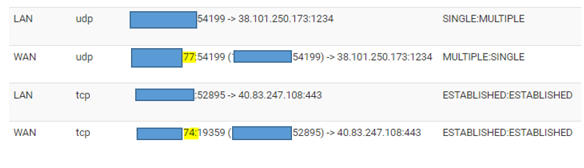 Different NAT with TCP/UDP
