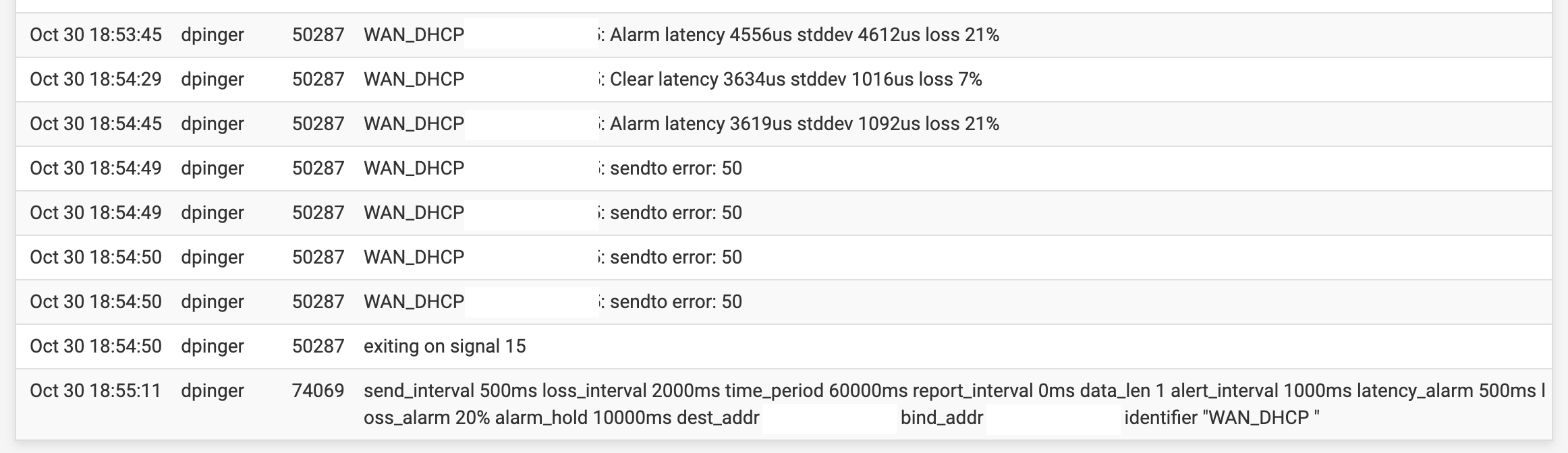 dpinger: sendto error: 50