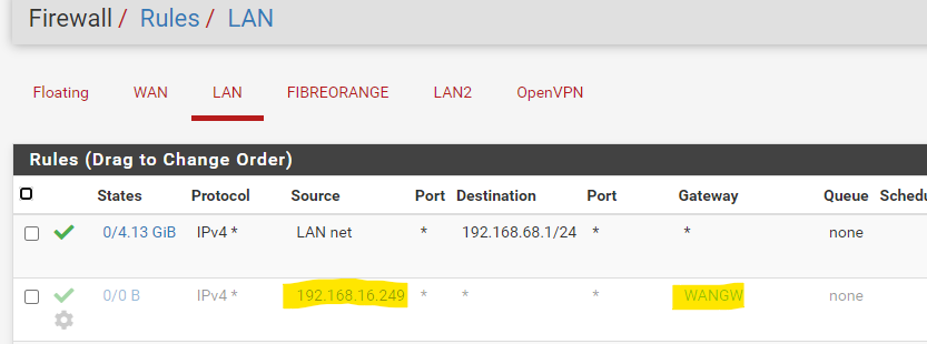 If that 192.168.16.249 sent anything anywhere that hit pfsense, that rule would show the traffic - even if it didn't work. But it shows 0/0 - from what you have shown you have something else in play on why that rule didn't trigger, a floating rule? That is the wrong source IP, it sent its traffic to some other gateway?