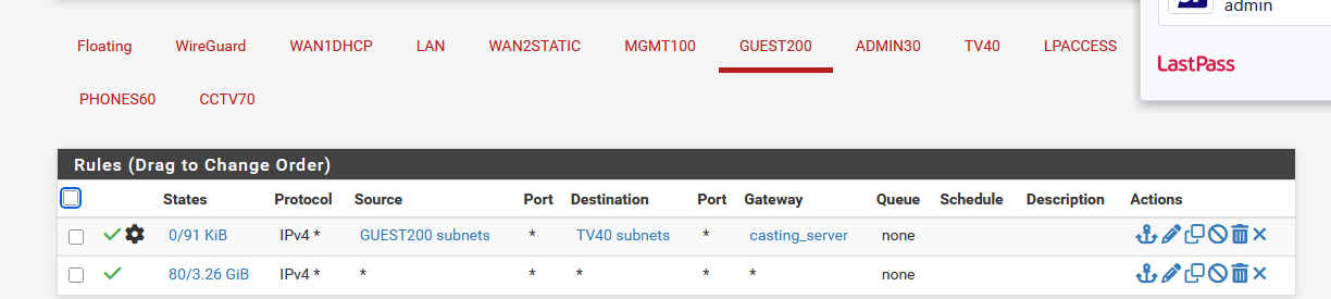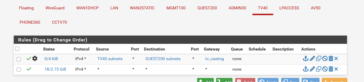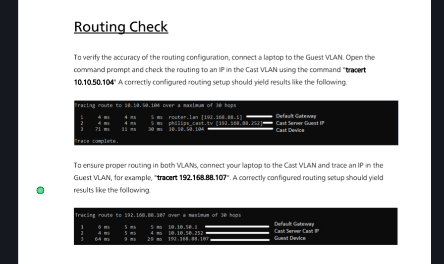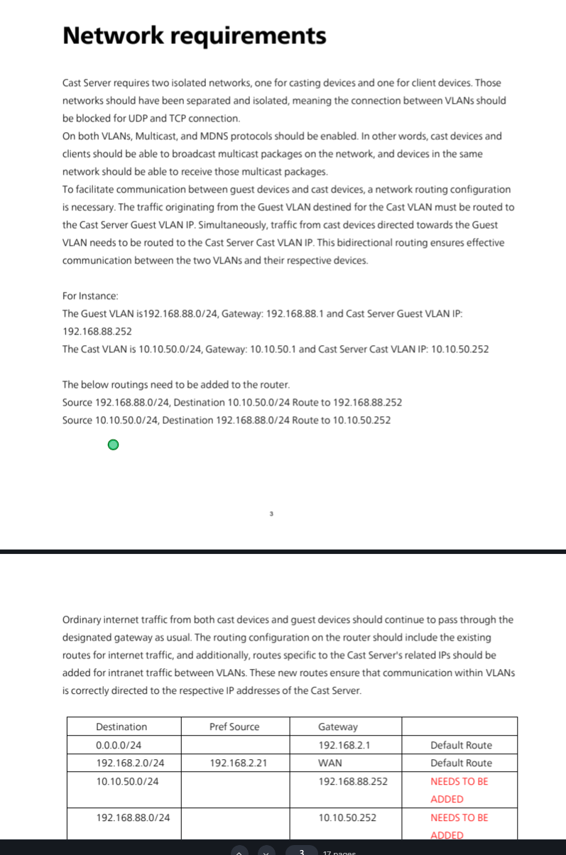 By having the casting server act as a separate router between the two subnets you are creating an asymmetric route at both ends. I would expect TCP traffic to fail and see blocks in the firewall log?