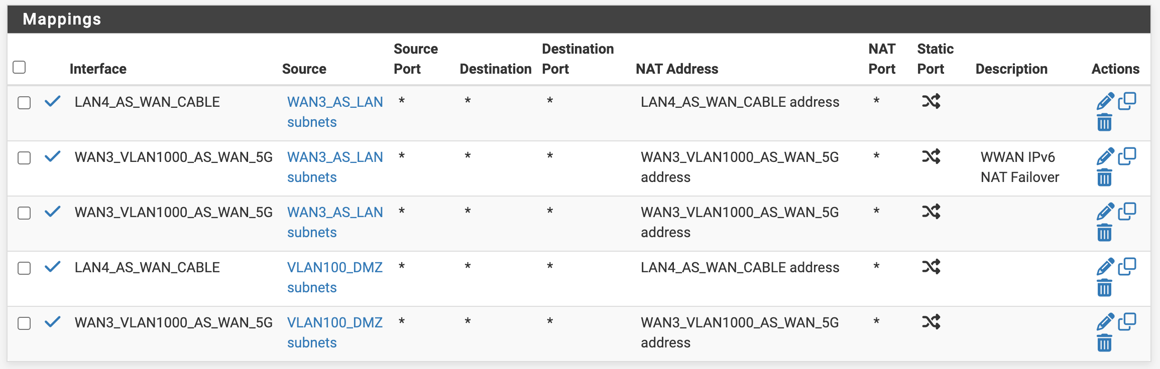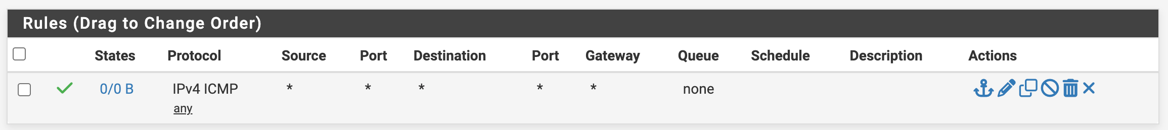 (the VPN endpoint is a peer of FCIX; my ordinary Internet connection bounces around a bit until it hits HE Fremont and then into FCIX).This is probably a silly problem, but for the life of me I cannot figure out how to get the internal services subnet to respond to the outside world, even the router (which is configured to permit any ICMP packets, and responds appropriately on its own WAN IP). I am able to talk to it internally from a typical private-IP subnet. I don't see any obvious firewall "this is blocked" log messages, either.