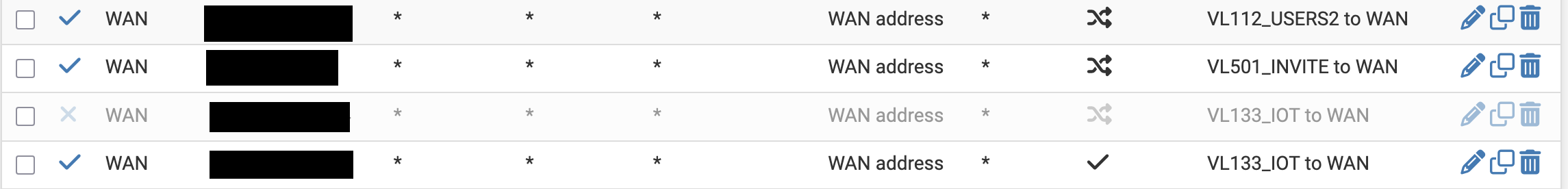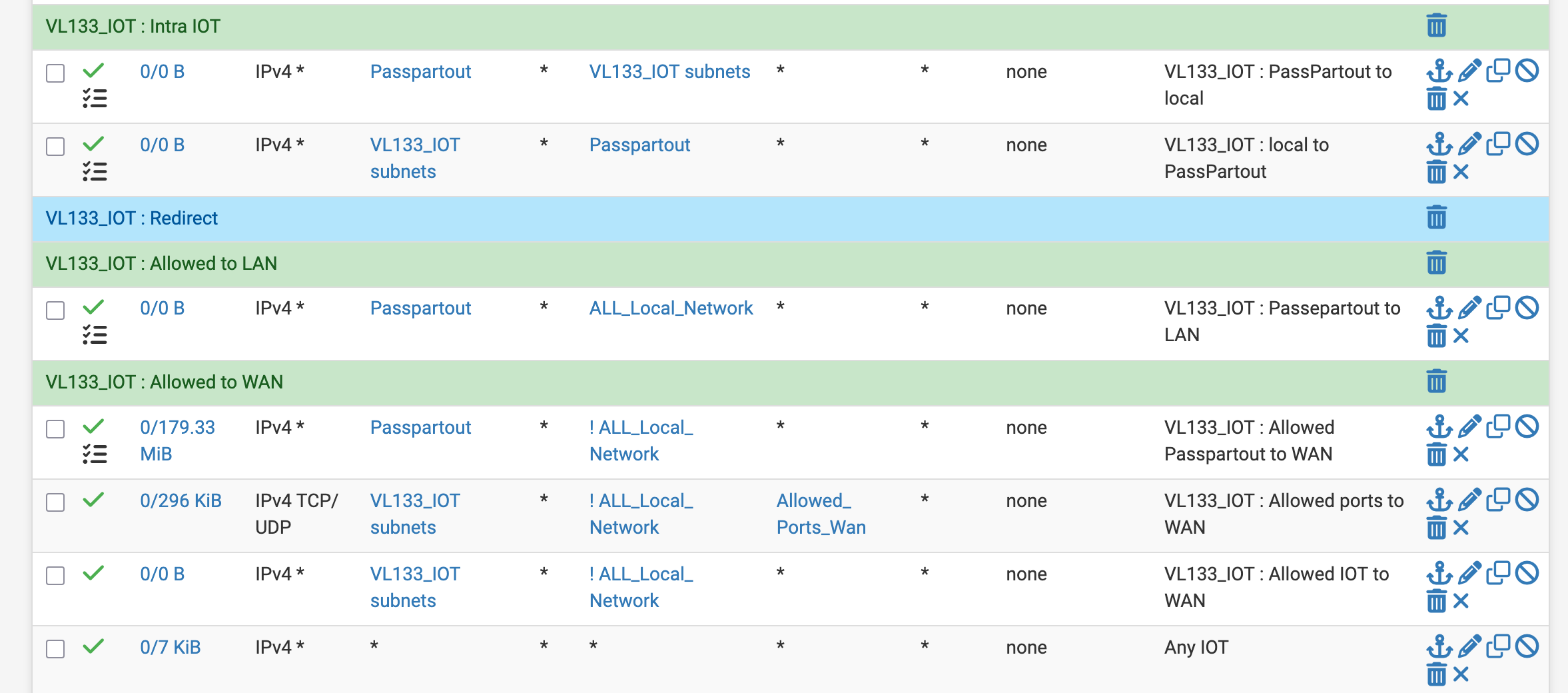 Sur ce modèle pour tous les Vlan, sauf IOT qui n’est pas en random portFirewall