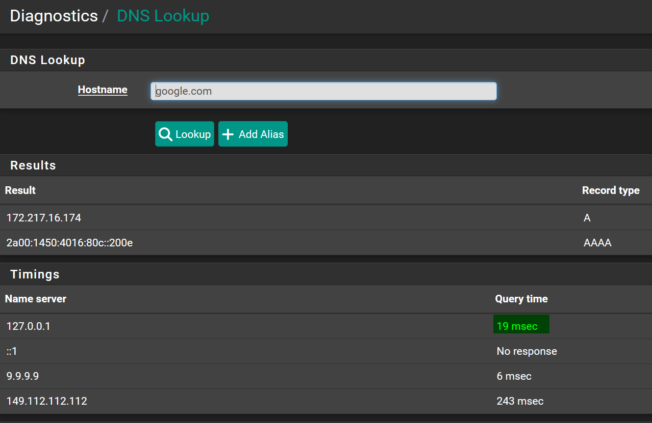 With WAN, LAN, Localhost resolution is slow, 1-2 timeouts before successful resolution.