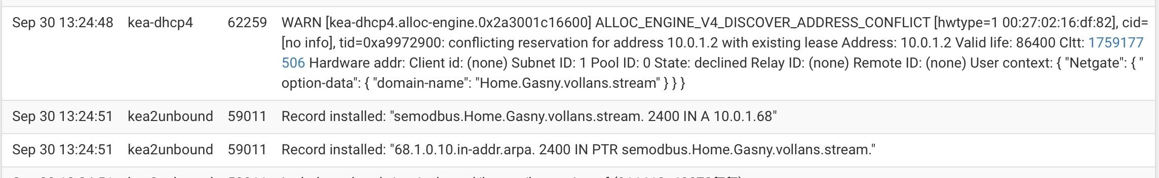 Just the the firmware.Anyway : I still suspect it isn't a kea issue as it clearly says : 10.0.1.2 can be given as another device is using it.