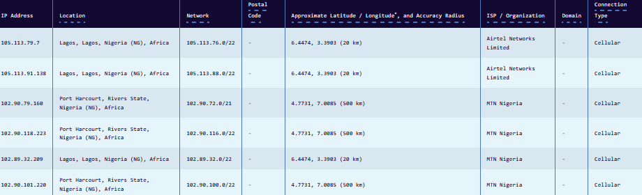 If so, and all is well, this list should be the list with Geo IPs you want to block.
