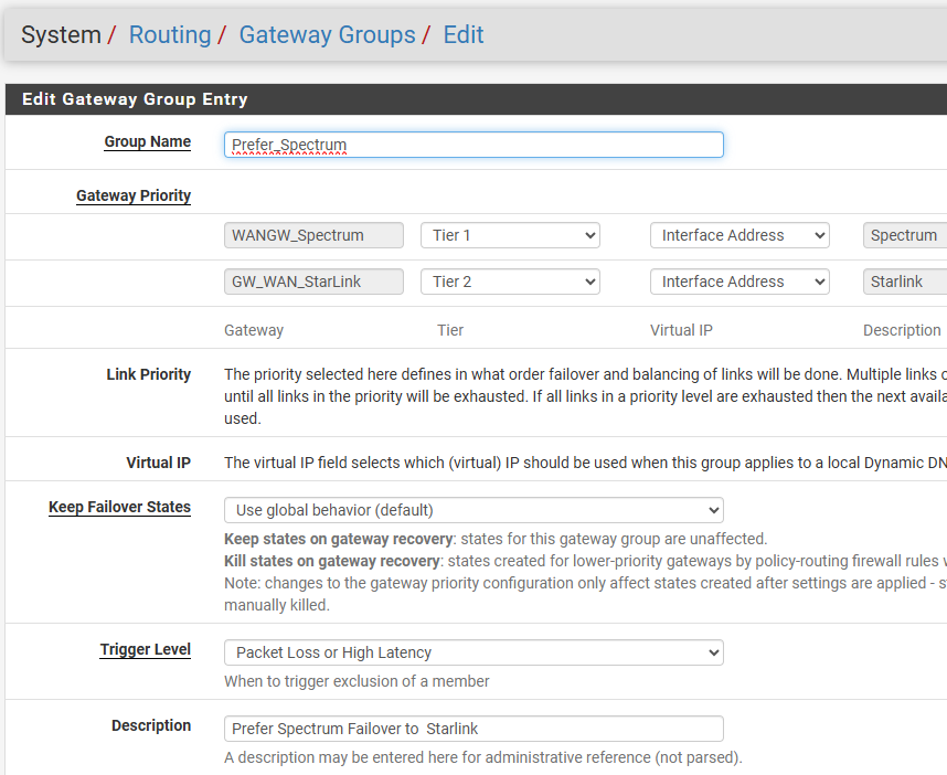 There are no firewall rules that specify the Starlink GW. All fw rules either don't specify a gateway or specify the Tier 1 gateway.