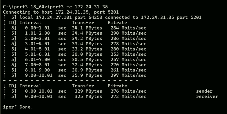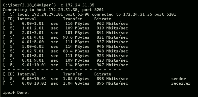 iperf results;