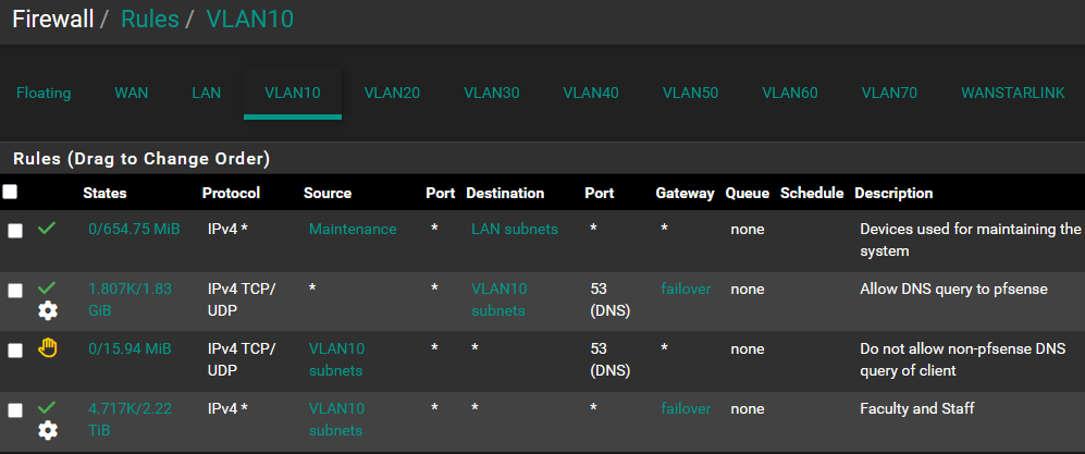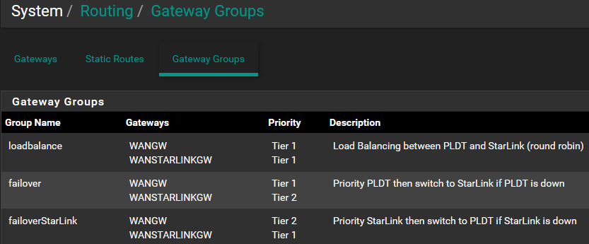 It is set to fail over from WAN1 to WAN2 (starlink):