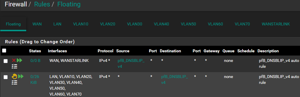 Additional info: pfBlockerNG > IP is not used and these are the two blockings under DNSBL: