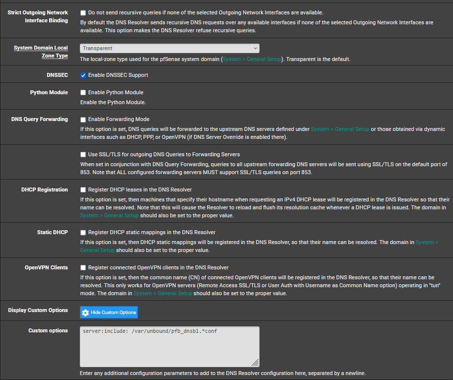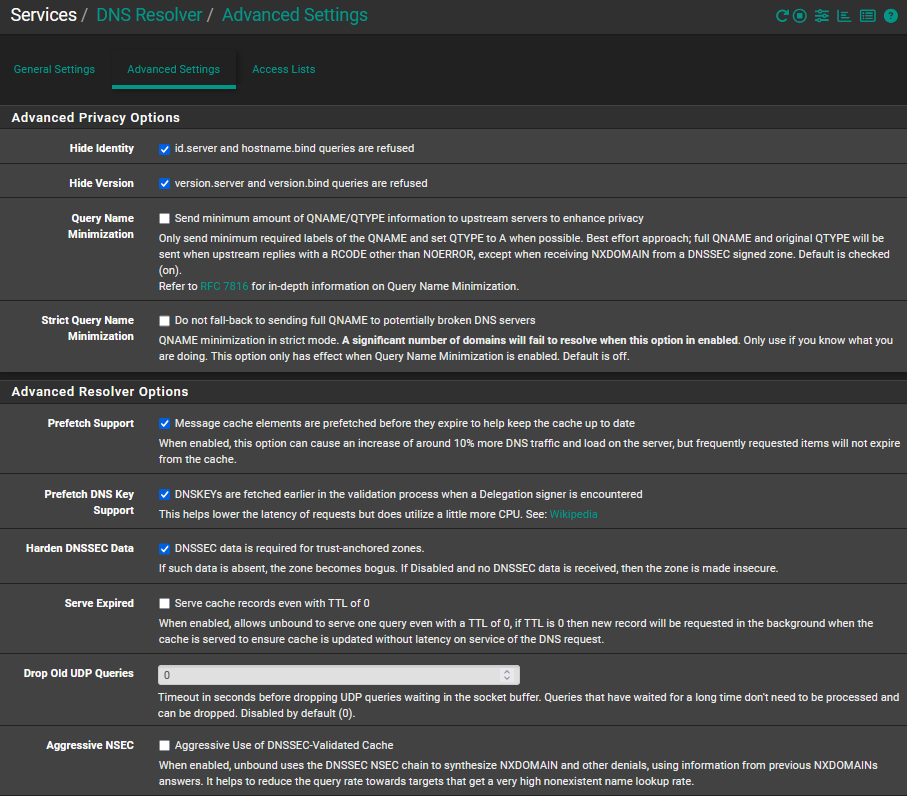 This is the first part of DNS Resolver's Advanced Settings. Please let me know if I need to send the remaining entries: