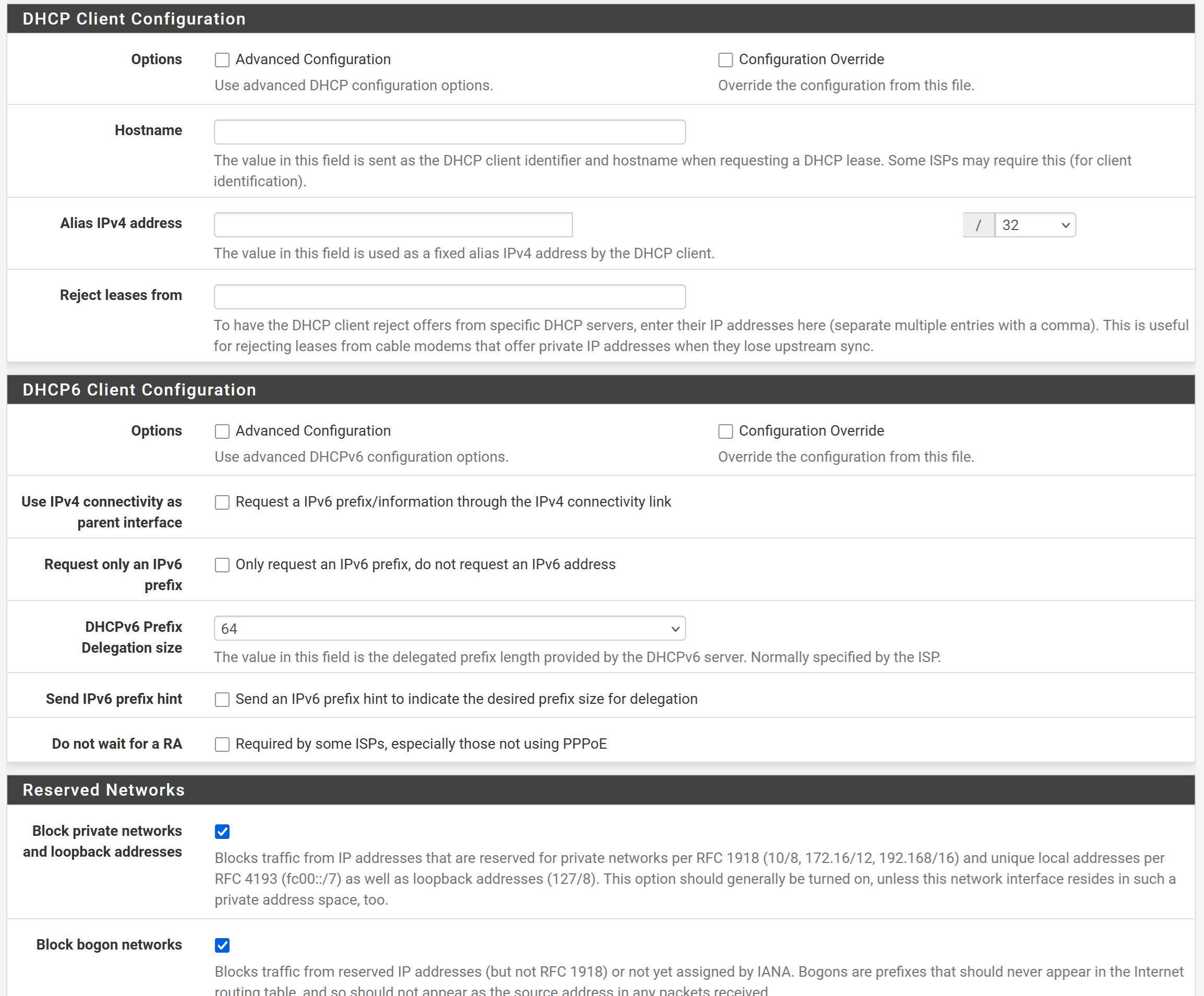 When setting the XB8 to bridge mode, its web admin UI continues to be accessible at 10.0.0.1 . However, once I switched to using pfSense as router, the problem with Windows clients not having IPv6 occurred again. The weird thing is that it worked fine for one Windows client in the first few minutes after pfSense and router booted up. Then it stopped working shortly after when I repeated the test a few minutes later. While it worked, I looked at status / DHCPv6 leases, and there were no Prefix delegation leases.