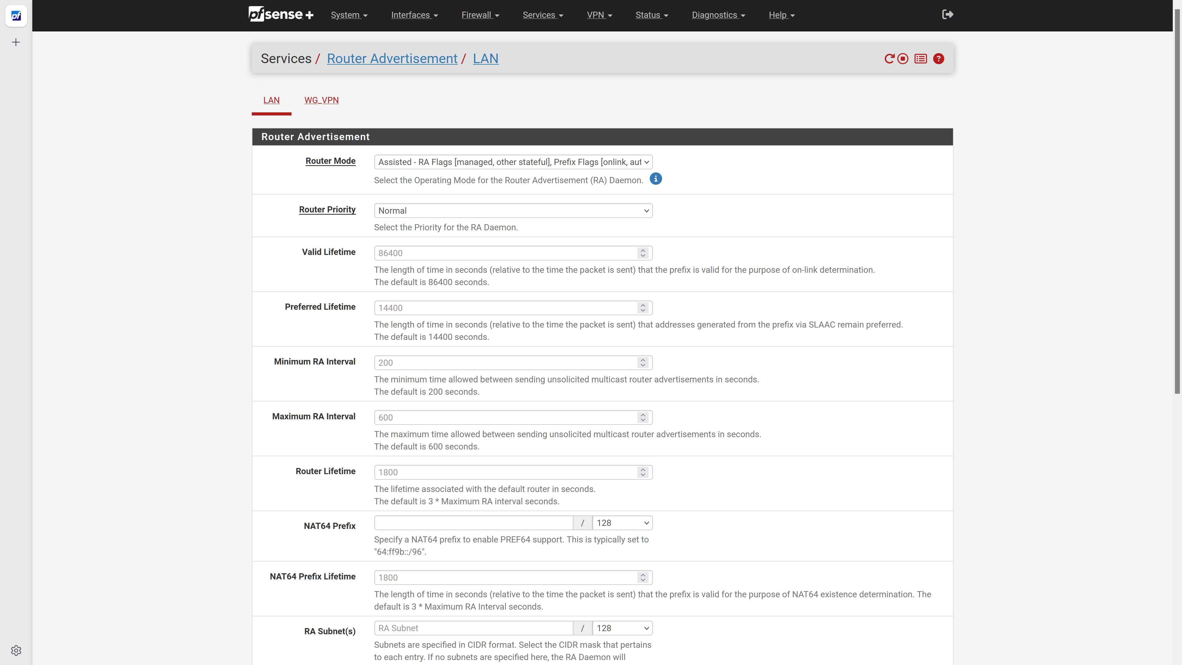 Thank you !Good to know what to expect when it's working. However, the fact that you only have a single device connected to pfSense may mean that it isn't a fully working configuration. Is that device a Windows machine using Prefix delegation, or Linux system using SLAAC ? Or something else ?