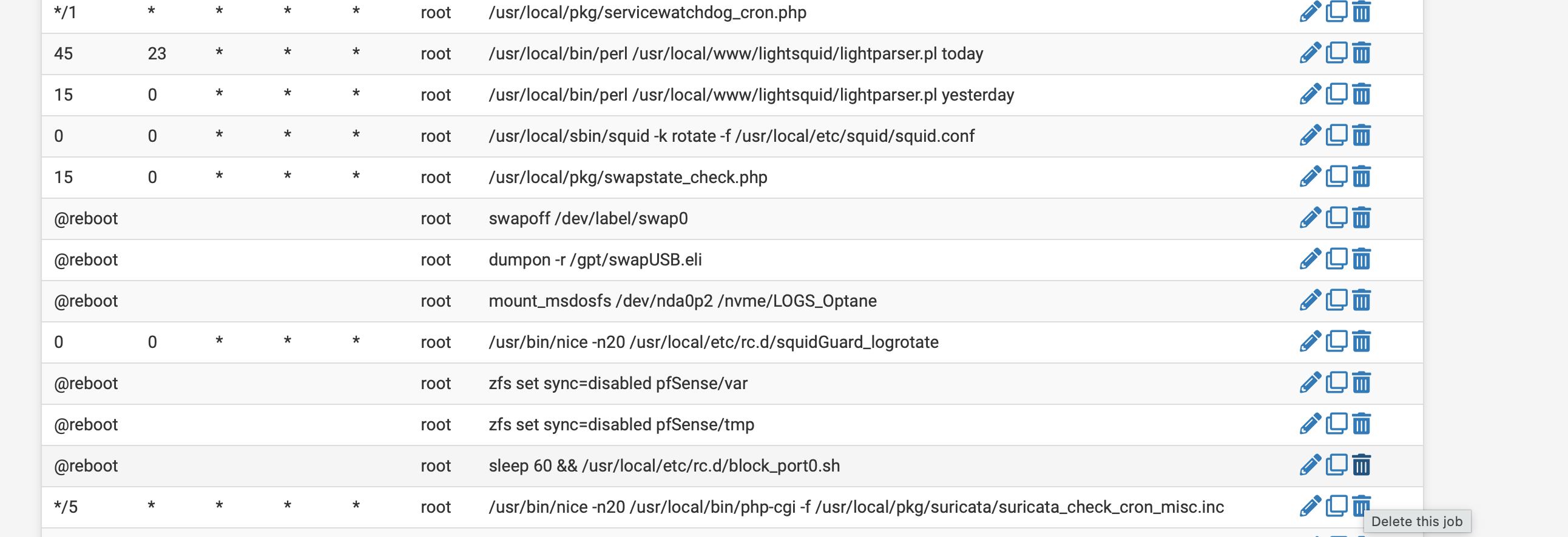 @johnpoz On a side note thanks for info on cron I removed that and the wedged errors are gone and it does run automatically. You can see it running when it reboots.
