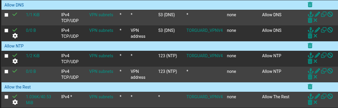 This has been working fine, but for some reason my 2 Shields are not showing no NTP or DNS in that subnet, making them not run as optimal as it used to a couple of days ago. I can't remember or see anything changes that could carse this in the PFsense history.I've just testet creating a new VM in that subnet - having no issues with neither DNS or NTP