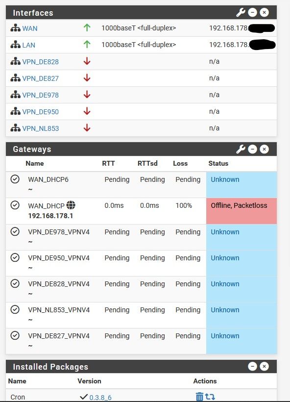 Aber pfSense zeigt die Gateways als "unknown" an.