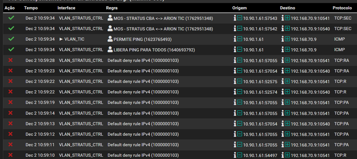 O Firewall Libera, e em seguida bloqueia caindo na regra default (Default deny rule IPv4 (1000000103))